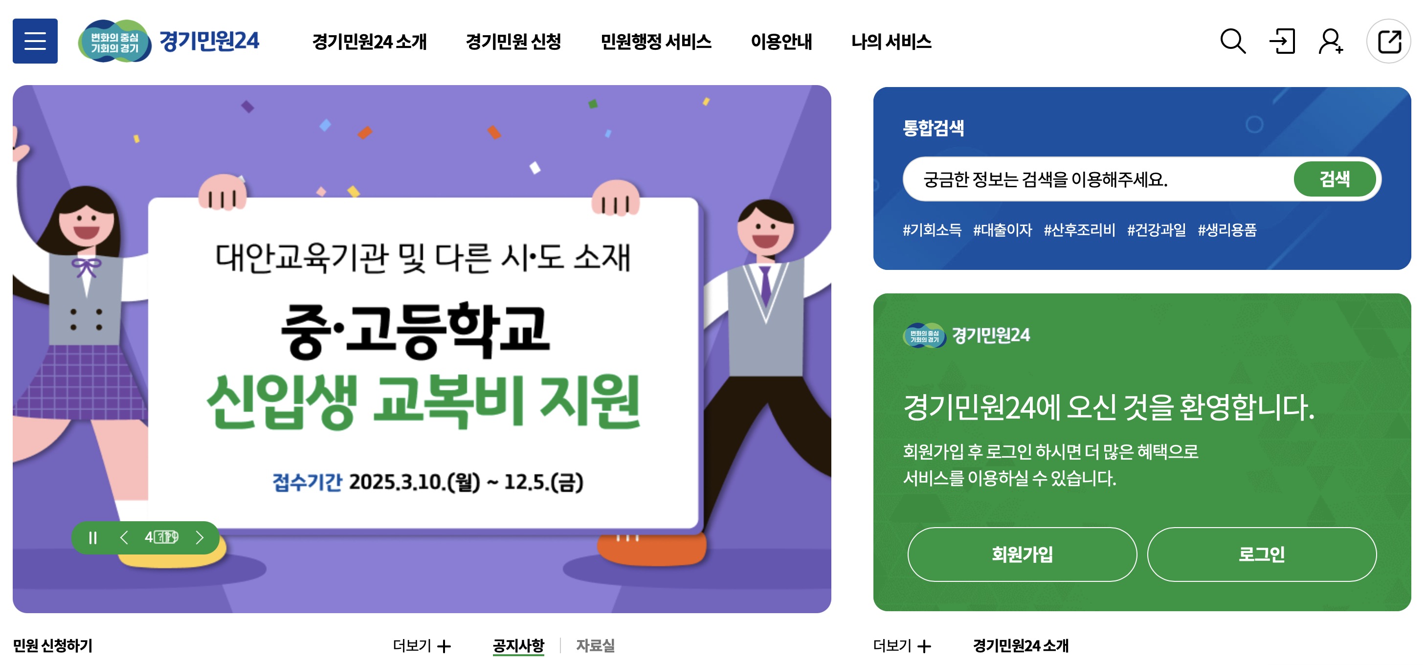 경기민원24 홈페이지 https://gg24.gg.go.kr/